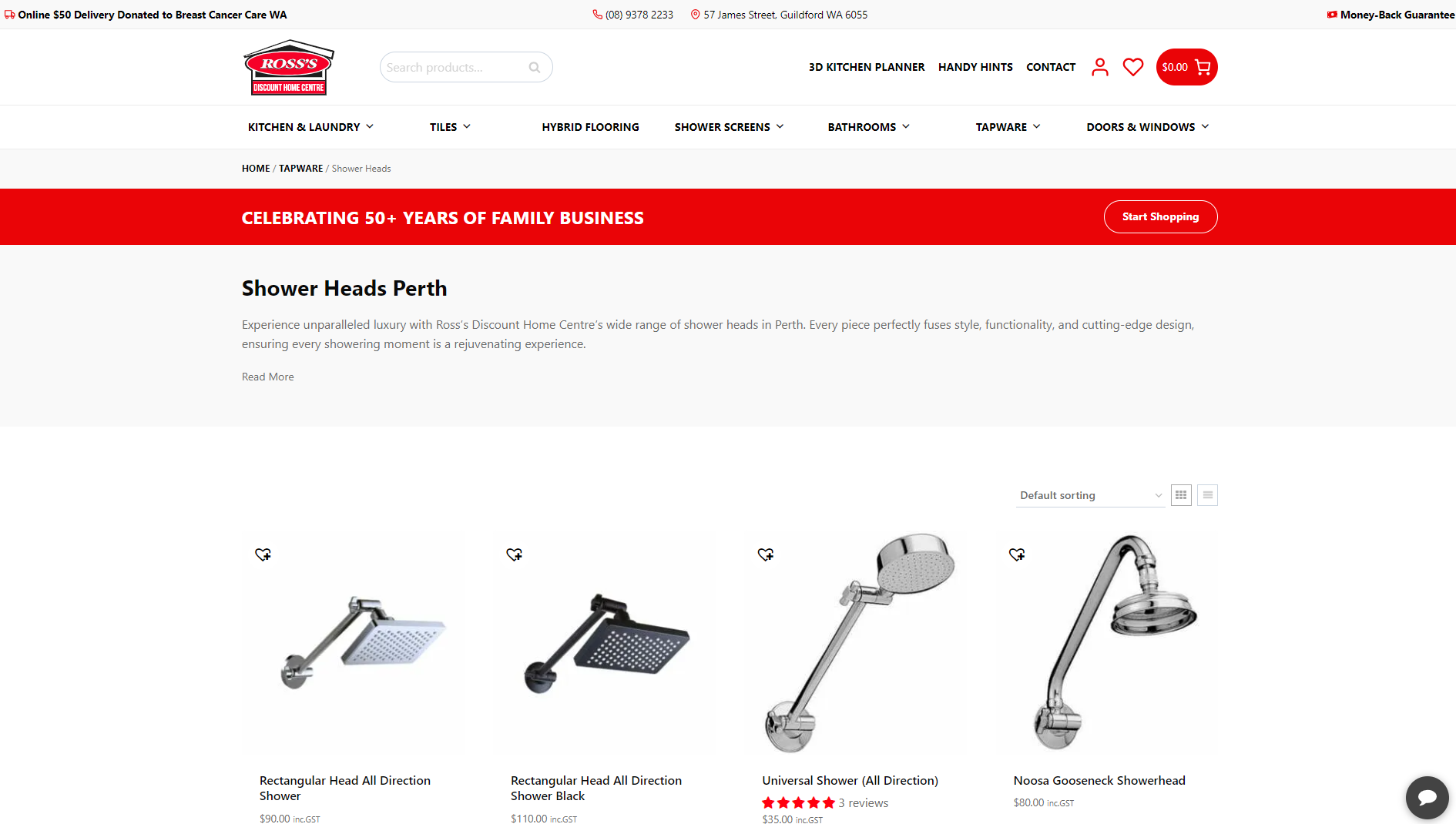 Stunning Collection of Showerheads in Perth by Ross’s Discount Home Centre