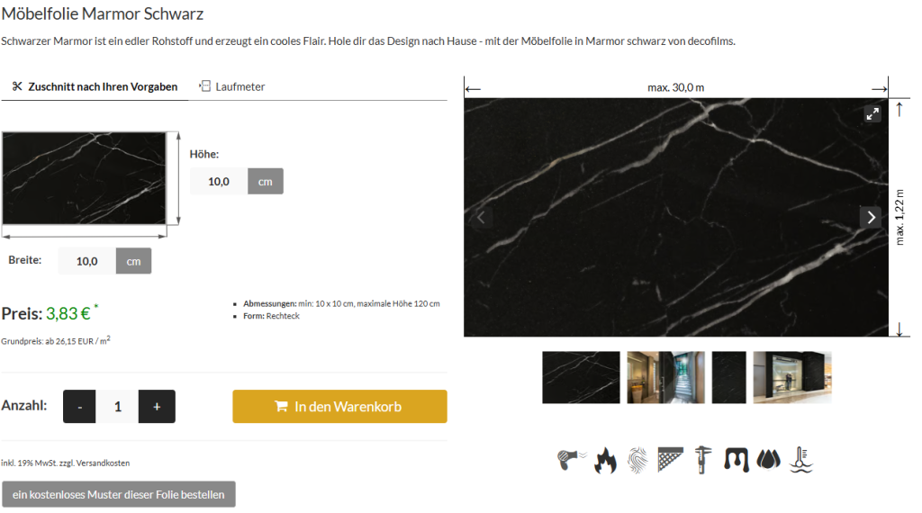 Die schwarze marmor folie überzeugt durch zahlreiche Vorteile: