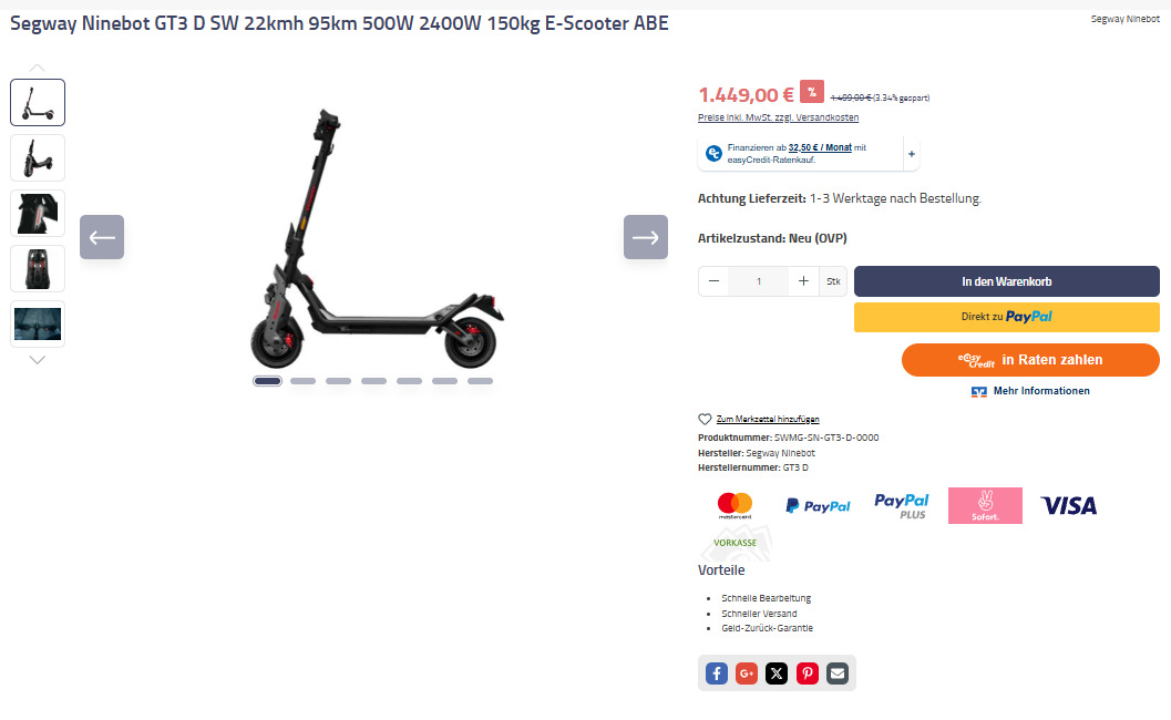 Ja, der Ninebot GT3 D ist ABE-zertifiziert.