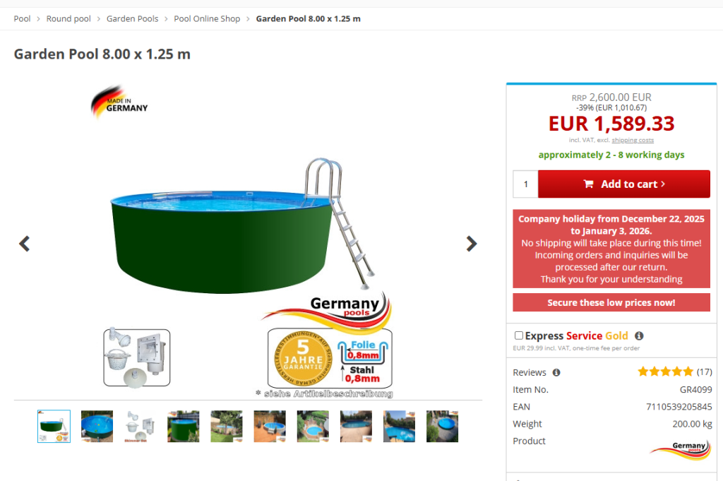 - Zubehör: Filteranlagen, Poolleitern oder Abdeckungen erleichtern die Nutzung.